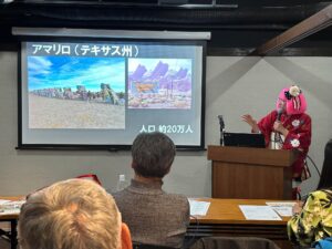 2023/12/20開催 「べんてんや」が映画上映で米国進出 2023年12月28日 最終更新日時 : 2025年9月5日 wpmaster 女性7人で興行する名古屋のちんどん「べんてんや」にアメリカから映画出演の話が舞い込んできました。映画出演に選ばれた理由やいきさつなどを含めて、興行を主催するスージーさんに報告をしてもらいました。実は「べんてんや」の海外進出はこれが初めてではなく、イタリア、ロンドン、ウクライナ、ベトナム、アメリカと、過去に何度も海外で興行にチャレンジしてきました。その時の人間的なつながりが、数奇なルートを辿って今回の映画出演に繋がったようです。
