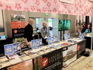 愛知インバウンド協会は名古屋体験ツアーと名古屋メシをアピールするブース出展を行いました。また、別室ではJTBUSA主催による訪日旅行セミナーが開催され、地元旅行エージェント約60社が来場されました。セミナーでは愛知インバウンド協会代表理事の粟津啓介が、日本の武将文化は愛知から始まったこと、居合道などの武将文化体験ができること、名古屋メシや名古屋モーニングなど楽しい食文化を体験できることをプレゼンテーションしました。