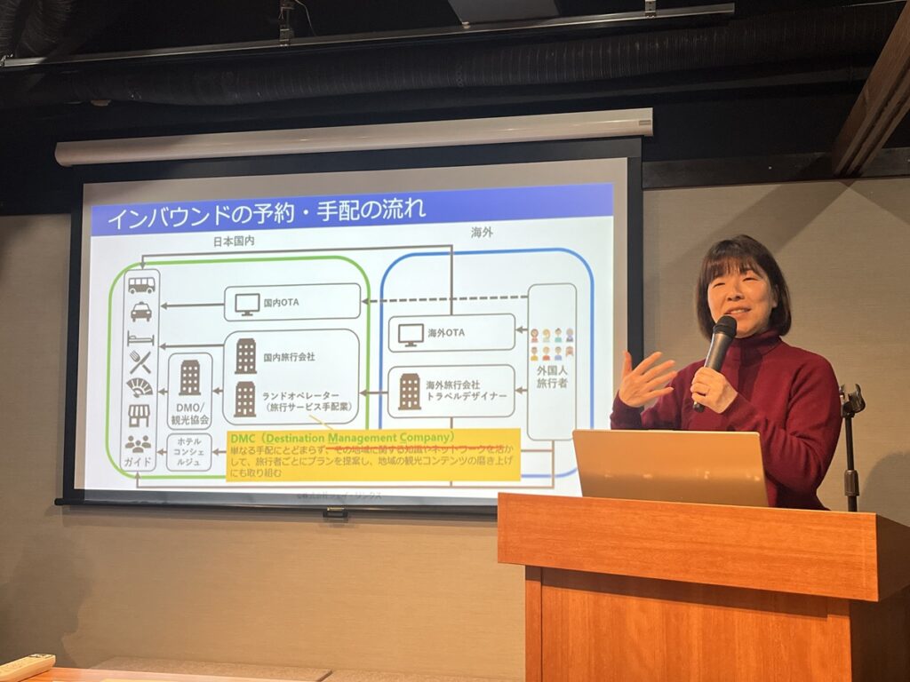 今回の講演者は株式会社ジェイ・リンクス代表取締役の金馬あゆみさんです 。金馬さんは「中東」と聞いて砂漠や爆弾といったイメージを持つ人が多い現状に触れつつ、実際にはリピーターが続出している日本の人気ぶりを語り始められました 。これから始まる講話が、名古屋・愛知のインバウンド戦略をどう変えていくのか。参加者の皆さんも熱心に耳を傾けていました。