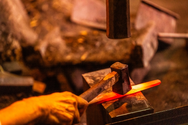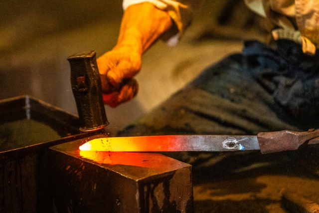 日本刀は一般に刀と呼ばれており、日本独自の製法で作られた、反りがあり片側に刃がついた刀剣です。平安時代末期頃に誕生し、「玉鋼」と呼ばれる良質な鋼を原料に「折り返し鍛錬」という技法で鍛えられています。材料となる「玉鋼」は特殊な製法で作られるもので、日本でも生産地は限られています。また、「玉鋼」から優れた日本刀を作るには高度な技術が必要とされ、これができる職人が極めて限られています。岐阜県関市は日本刀を始めとする刀剣類の産地として有名です。